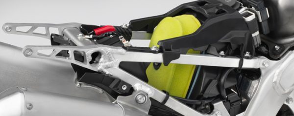 El nuevo sistema de doble escape de la CRF250R es liviano, compacto, y está colocado cerca y debajo del bastidor, para quitar peso de la parte trasera y llevar más masa al centro de gravedad de la moto para un mejor manejo. También permite más flujo de aire, y eso se traduce en obtención de mayor potencia.